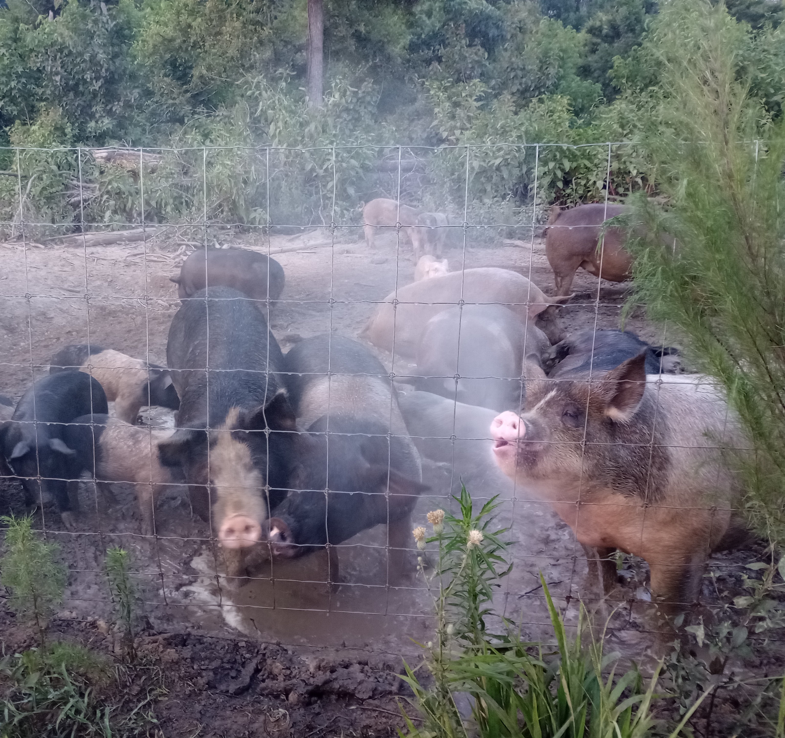 Baling strawGetting hayReady to bale BermudaIf the moistures right we’ll bale all nightStacking some StrawSprigging a new field of Bermuda Bundling some horse quality BermudaHay being rakedTedding the hay Look at our pretty cottonOur corn is growingThe pigs are taking a bathAren’t they cuteBreakfast time for the pigletsCock-a -doodle-dooLook at these cute bunniesBig BillyLook at spottySheepy SheepHere is our sweet cow Scooby Doo